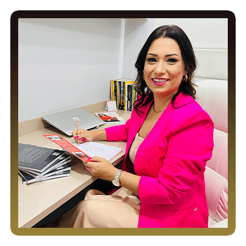 E está aqui para te ajudar a trilhar o seu caminho, ensinando tudo o que ela aprendeu, porque quer que você também tenha sucesso na sua loja online ou física e na vida.